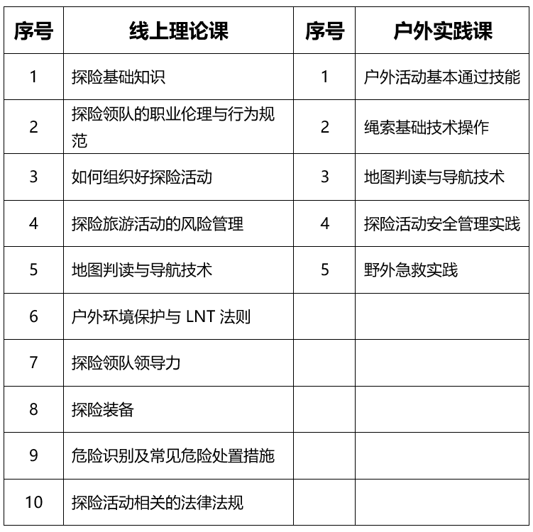 3、具备户外探险和探险旅游活动计划制定、组织实施的能力及管理思维;