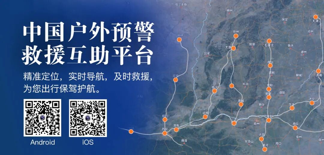 扫描图中二维码,可下载“中国户外预警救援互助平台”APP