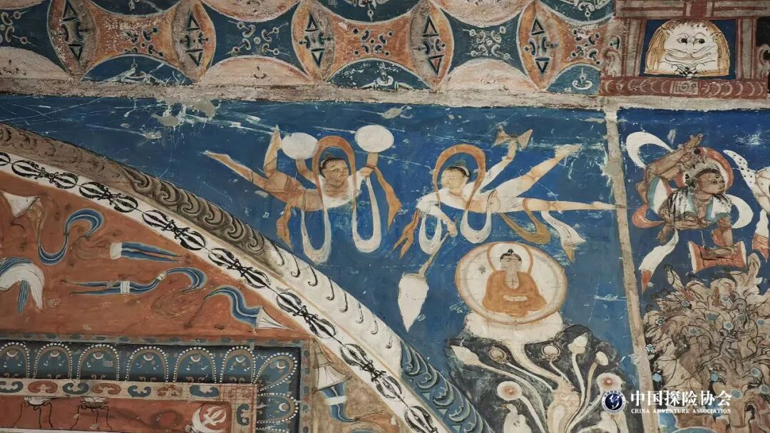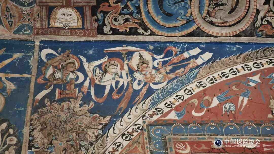 “鸿蒙智行丈量祖国大美山河”天权队拍摄的东嘎石窟壁画东嘎石窟现存洞穴接近200个,其中壁画保存较好的有1、2、3号窟。这3个石窟内的壁画,不仅历史久远,且内容丰富,题材主要包括佛像、菩萨像、佛传故事、说法图等,还有各种装饰图案纹样及密教曼陀罗等,甚至还包含异国他乡的人物、图案和造型等,一概造型生动、变化丰富。“这里保存着阿里地区最漂亮的壁画,风格跟古格王国遗址和托林寺不太一样。”宗同昌先生介绍说,“古格王国遗址和托林寺的壁画,以暖色调为主,主要是红色和橙色,而青色和绿色只是点缀。但东嘎石窟的壁画,以青绿色调为主,也就是所谓的冷色系。”