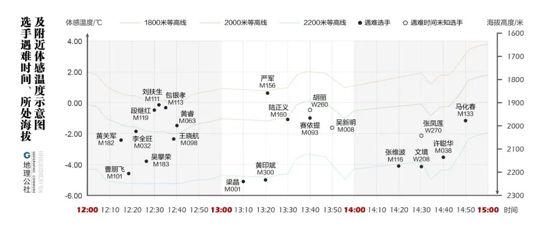 “5·22黄河石林越野赛”选手遇难时间、所处海拔及附近体感温度示意图 图源:网络