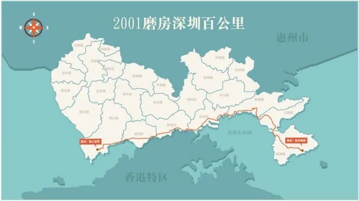 2001年8月10日,第一届磨房深圳百公里路线 图源:网络