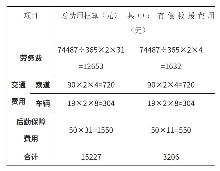 黄山景区公布的首例有偿救援费用明细表 图源:网络