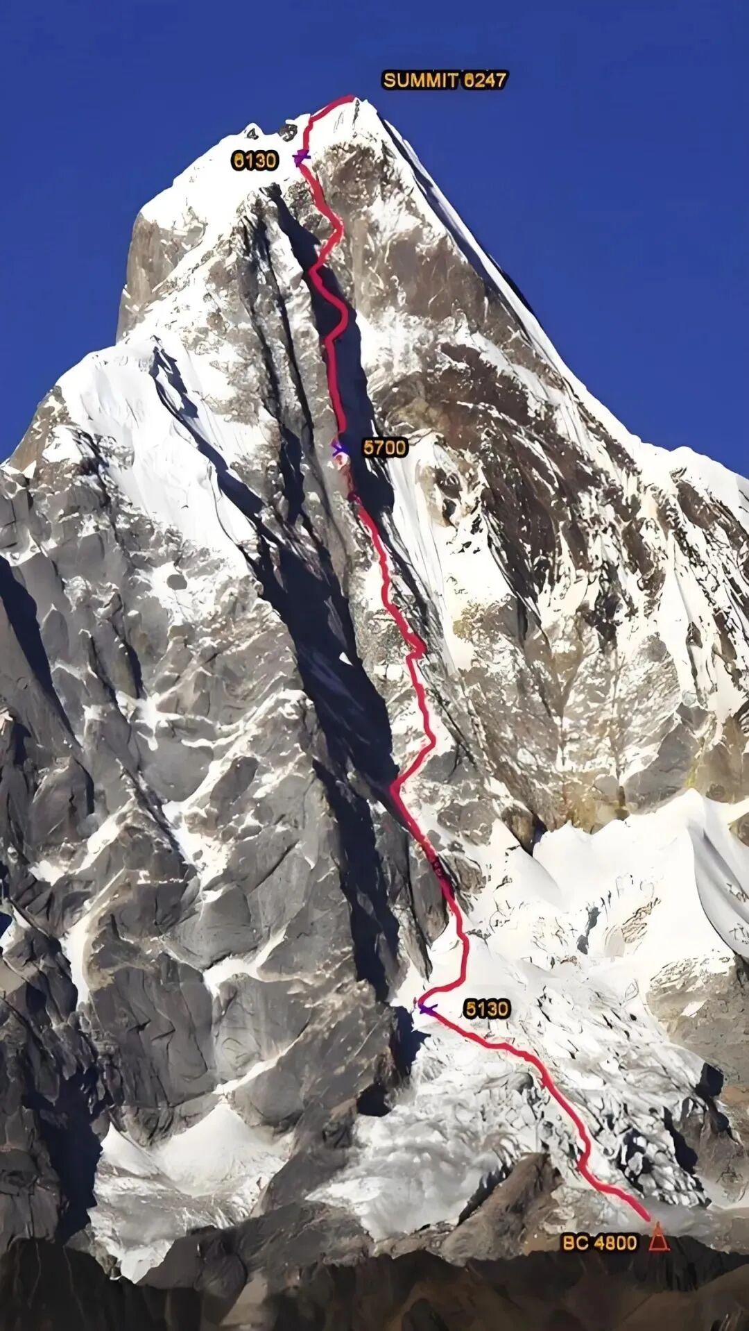 “去年,何老师在巴基斯坦成功登顶川口塔峰。虽说同样是高海拔大岩壁,但川口塔峰的难度远超布达拉峰。这可是世界级的攀登路线,在全球技术攀登范畴内,能攻克川口塔峰,意味着踏入了更高层级的领域。2023年的这次川口塔攀登,堪称完美,首次尝试便顺利拿下这条世界级路线,实在是太酷了!”