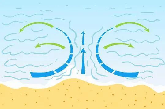 离岸流的流速通常能达到每秒2米,远超一般人的游泳速度。即便是经验丰富的救生员,在训练中也可能轻易地被离岸流拖向外海。离岸流以其隐蔽性和强大力量,成为全球海滩溺水事故的主要元凶。巴西与澳大利亚的长期研究显示,在海边,大约有90%的溺水是因为离岸流。据美国救生协会(USLA)数据,美国平均每年有超过100名海滩游客因离岸流溺亡。高处观察:在海滩高处可以发现,离岸流往往以白色泡沫带或浑浊泥沙流的形式显现,它们会明显偏离岸边,流向更为深邃的海域,形成一片相对平静却暗藏危机的水域。关注潮汐与季节:低潮时段、大浪天气以及夏季,是离岸流频发的时段,前往海滩前应细心查阅当地潮汐信息,保持高度警觉。留意地形特征:浅滩的沙槽和突出的海岬、礁石,或人工结构物周围,往往是离岸流的高发地带,需特别留意。其次,为了应对离岸流,需掌握如下自救方法: