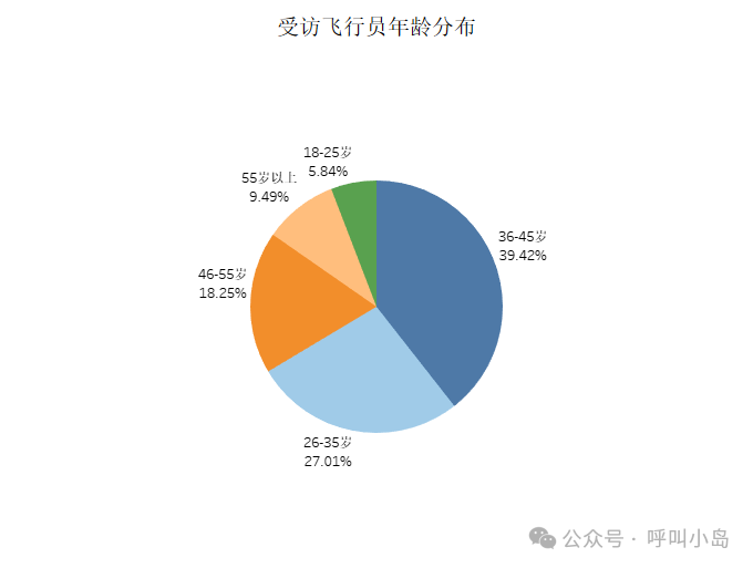 结论: 此次受访的飞行员主要以有一定飞行经验(1~10年)的飞行员为主。