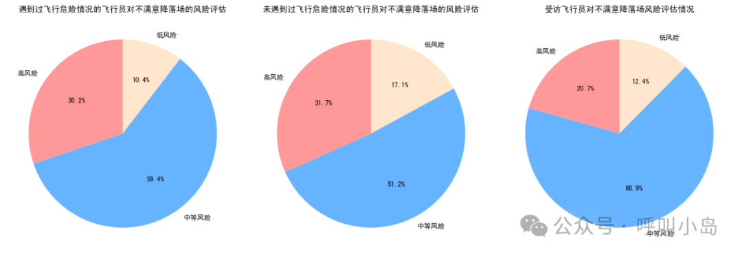 结论:经历过飞行危险情况的飞行员,对风险的认知更偏向于中高风险,而未经历过的飞行员则更偏向于较低风险。这说明实际的飞行经历对飞行员的风险认知有显著影响。